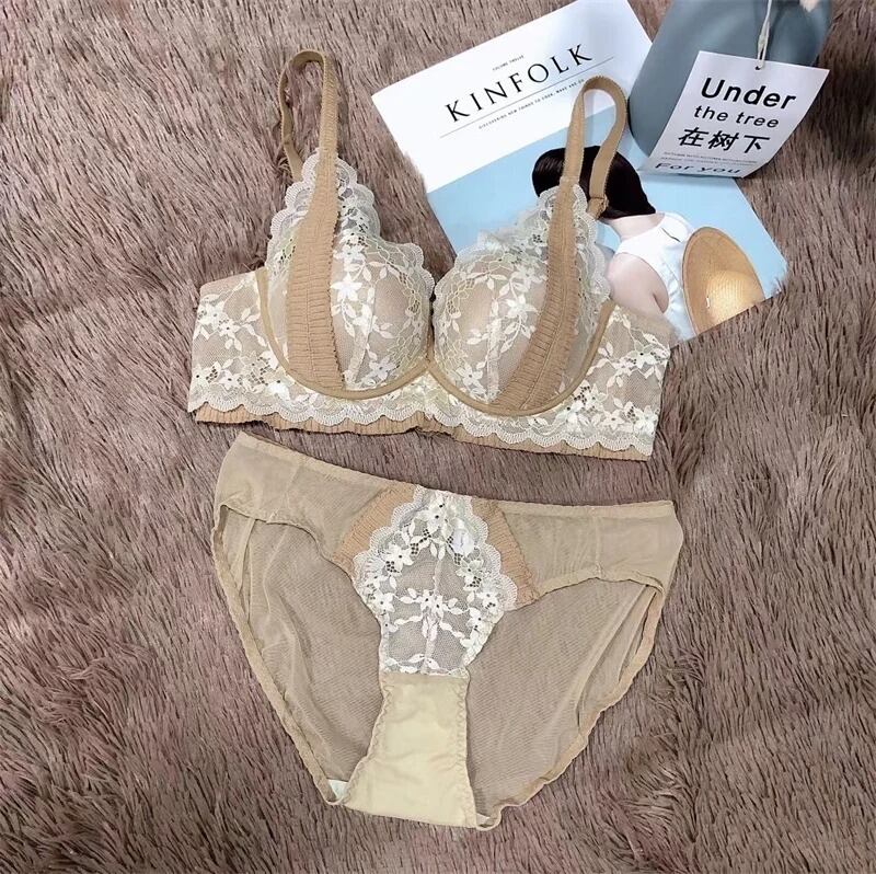 ★送料無料★ 4カラー レディース フラワーレースブラショーツセット 70A~80B