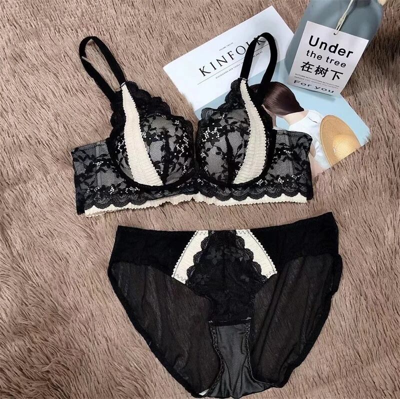 ★送料無料★ 4カラー レディース フラワーレースブラショーツセット 70A~80B