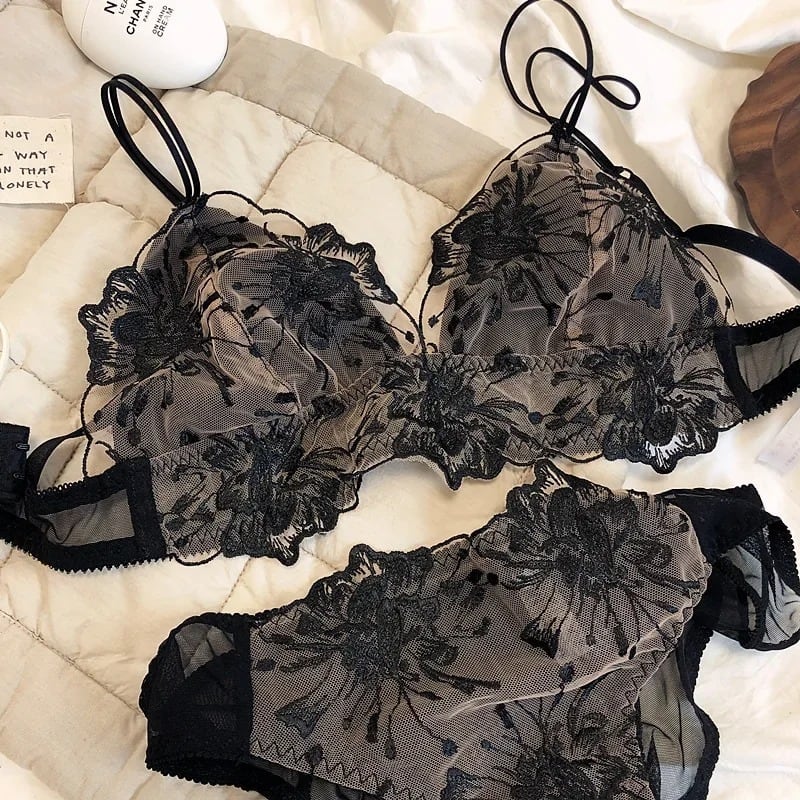 ★送料無料★ レディース フラワー刺繍レースブラショーツセット S~L