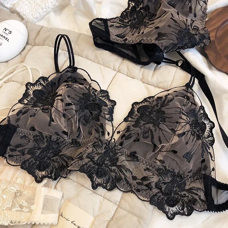 ★送料無料★ レディース フラワー刺繍レースブラショーツセット S~L