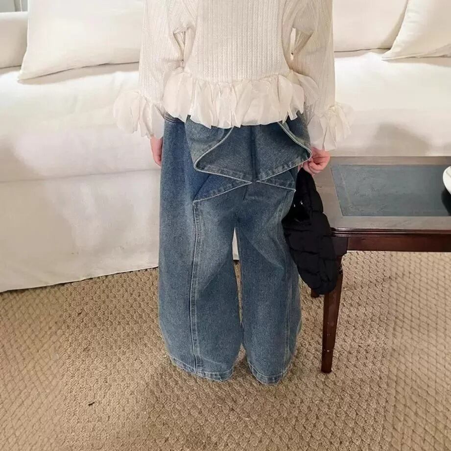 ★送料無料★ キッズ バックリボンジーンズ 90cm~140cm 春 夏 秋 冬 韓国子供服