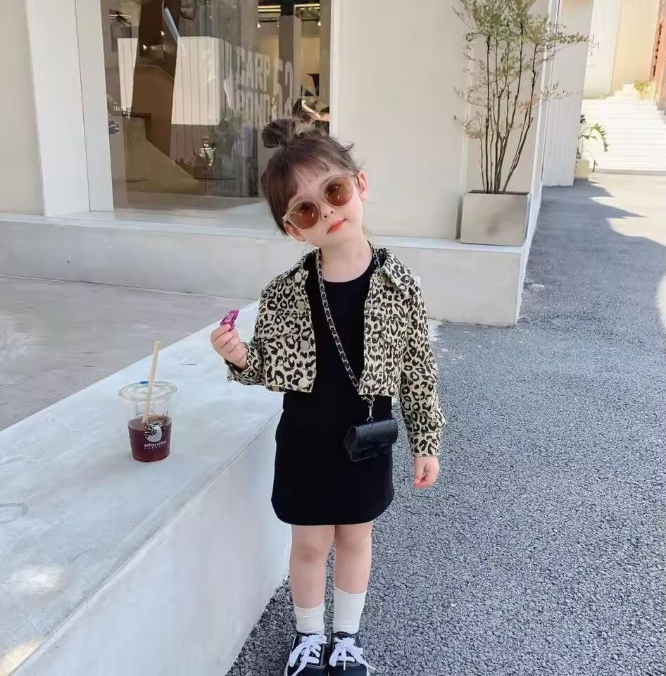 ★送料無料★ 女の子 ワンピース+レオパードジャケット セット 90cm〜130cm 秋 冬 春 韓国子供服