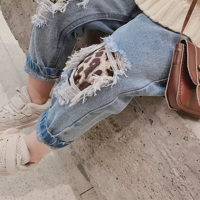 ★送料無料★ 男の子 女の子 ダメージレオパードデニムパンツ 90cm〜130cm 春 夏 秋 冬 韓国子供服