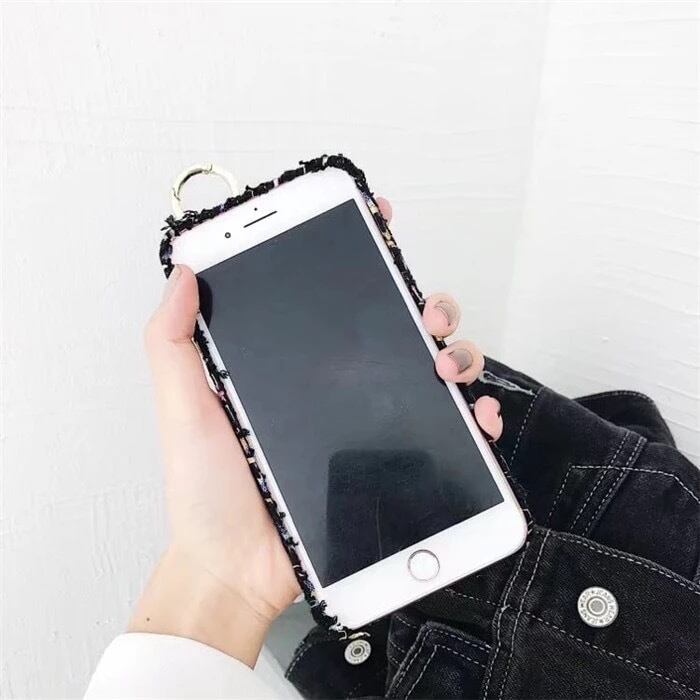 ★送料無料★iphoneケース アイフォンケース 手首ストラップ キーホルダー 生地 ブラック
