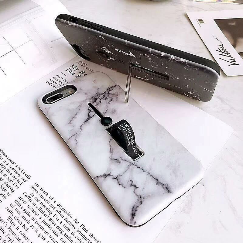 ★送料無料★iphoneケース スマホケース スライド フィンガーストラップ ブラック大理石風 ホワイト 大理石風 TPU (ブラック大理石風)