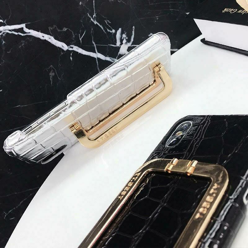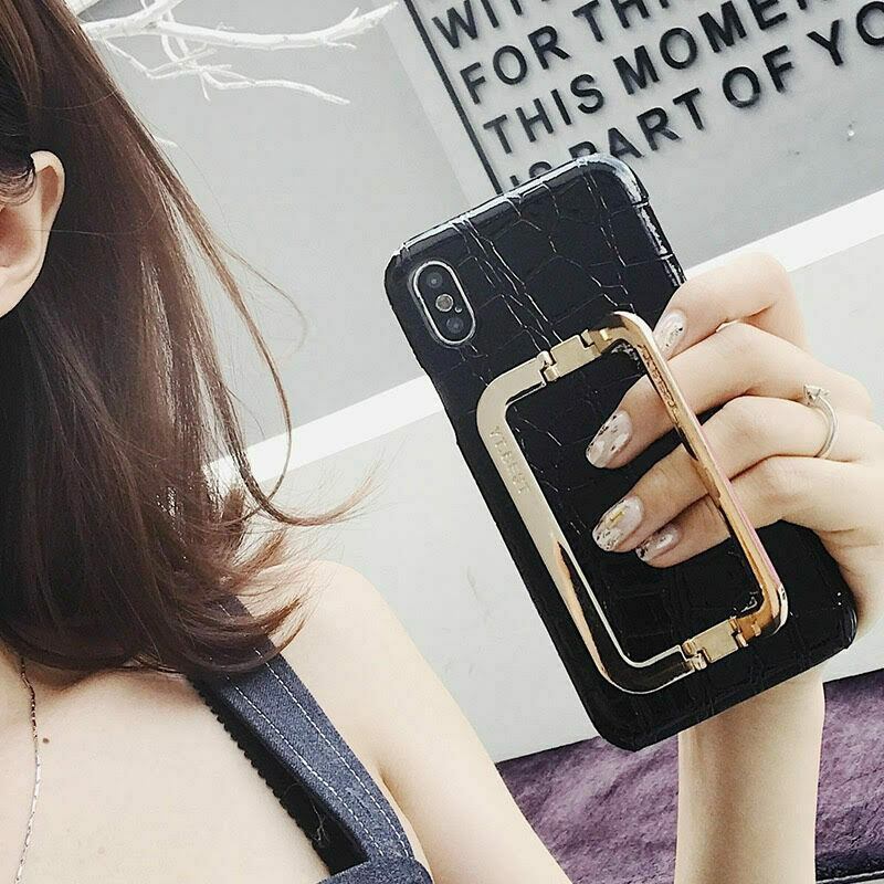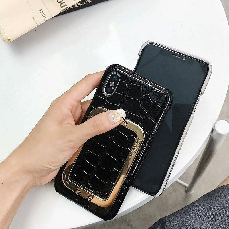 ★送料無料★iphoneケース スマホケース 折りたたみ ハンドストラップ シンプル レザー調 ハードケース クロコダイル風 ブラック 黒