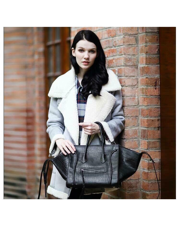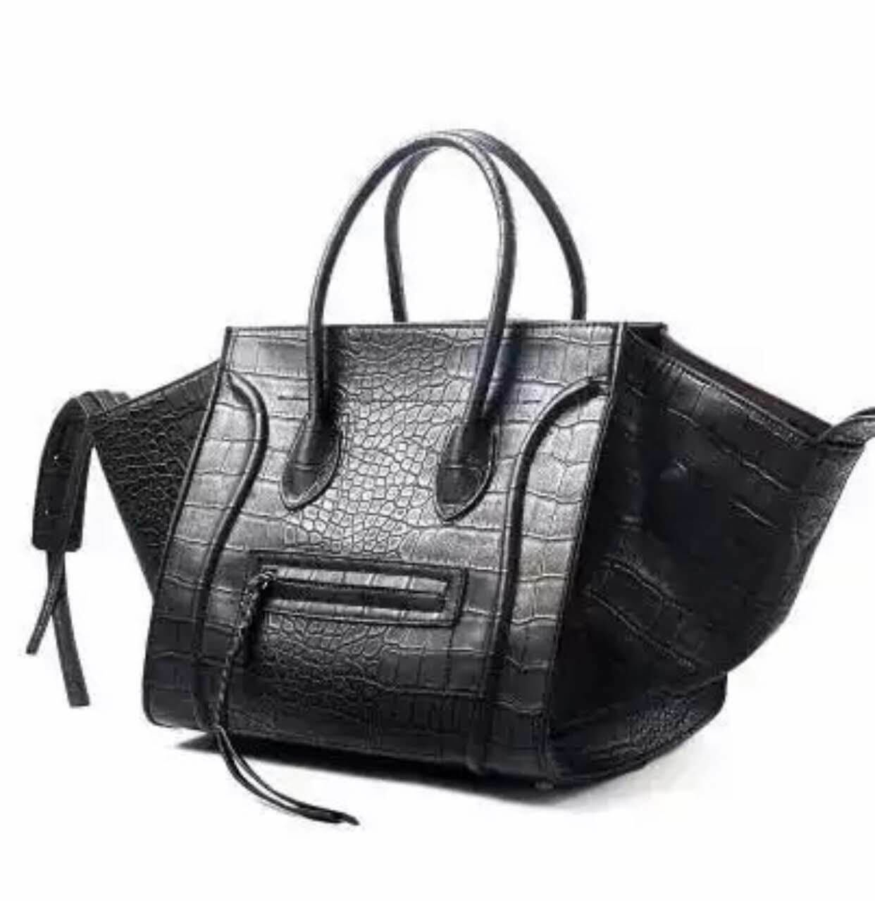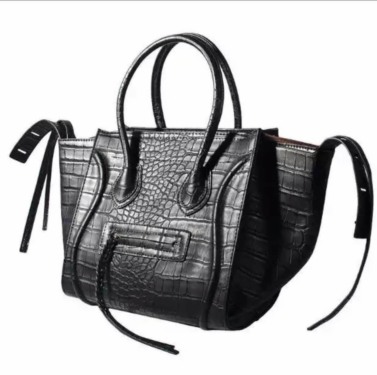 ★送料無料★ハンドバッグ PUレザー 高品質 ストラップ ブラック グレー ブラッククロコダイル風