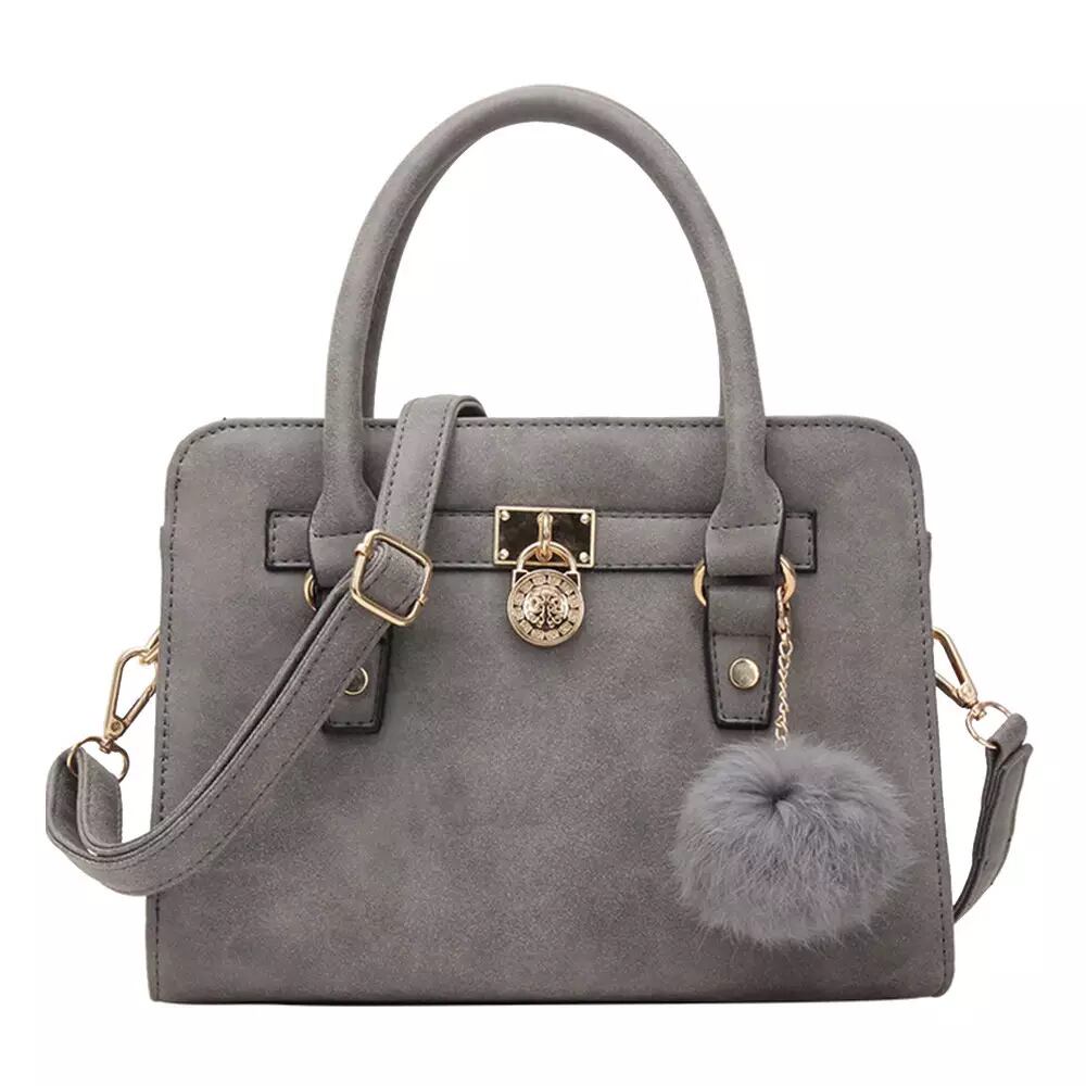 ★送料無料★ハンドバッグ PUレザー 高品質 ストラップ ショルダーバッグ ファー ブラック 黒 グレー 灰