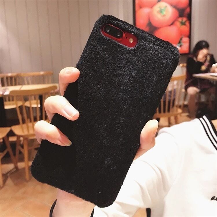 ★送料無料★iphoneケース スマホケース ファー ハラコ ブラック 黒 シンプル