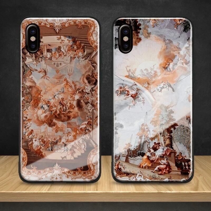 ★送料無料★iphoneケース スマホケース アート 美学 ヨーロッパ ヨーロピアン ヴィンテージ ビンテージ 光沢 艶 つや 壁画 強化ガラス