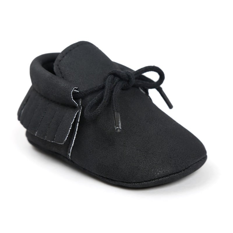 ★送料無料★ベビーシューズ 子供 赤ちゃん 靴 男の子 女の子 モカシン PUレザー カジュアル おしゃれ 紐 ひも ブラック 黒