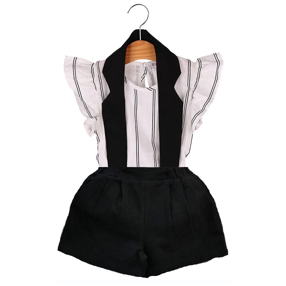 ★送料無料★ セットアップ 上下セット ベビー 子供 キッズ 服 ストライプ リボン ブラック 黒 ホワイト 白 女の子