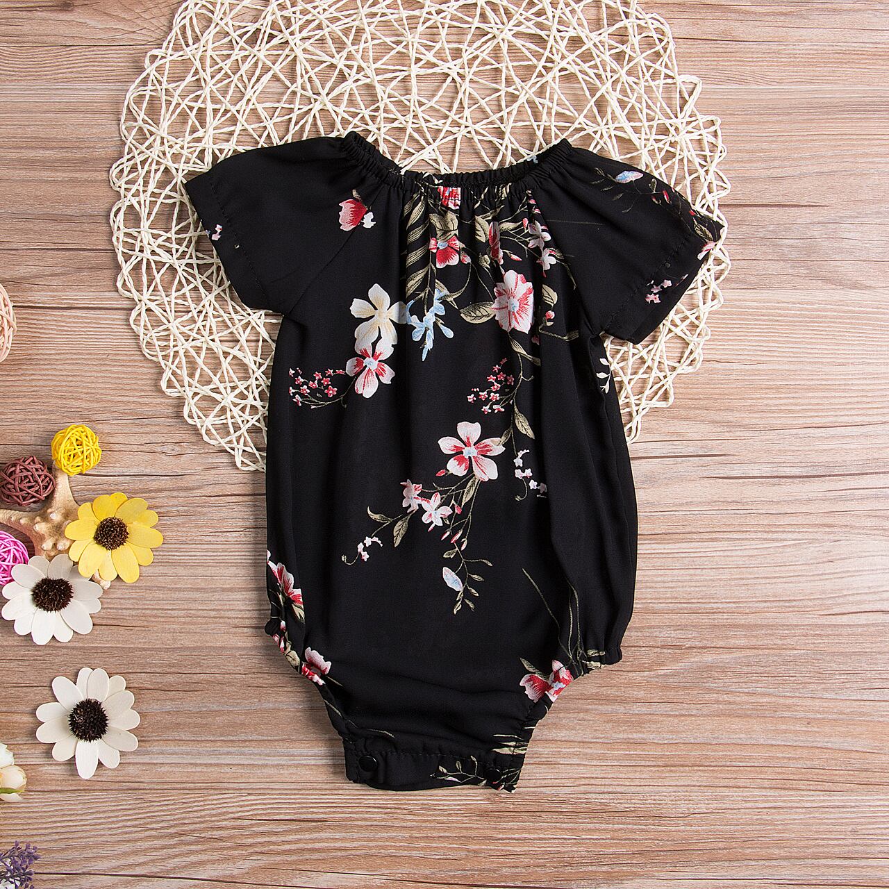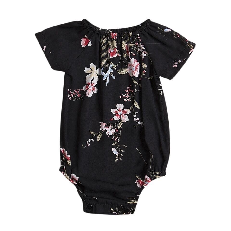 ★送料無料★ ベビー ロンパース キッズ 子供 赤ちゃん 花柄 ブラック フラワー 黒 夏 新生児 女の子 0〜24か月
