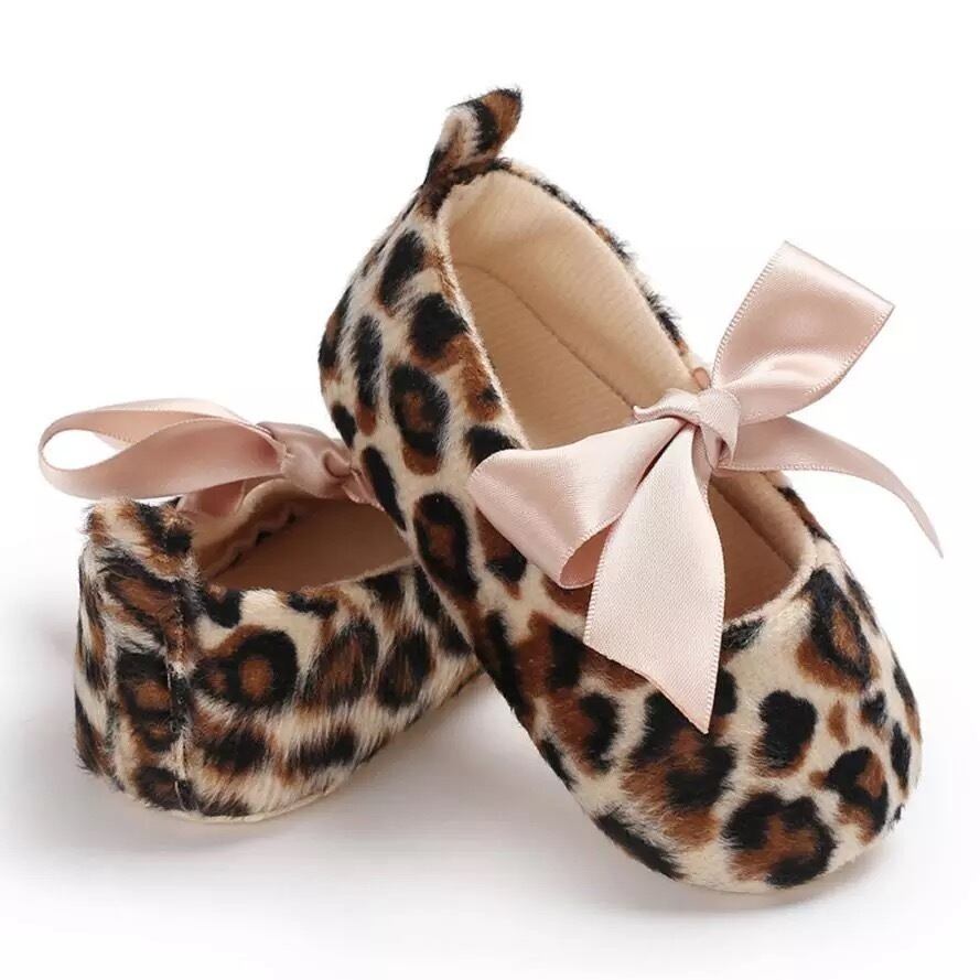★送料無料★ ベビーシューズ 靴 キッズ ベビー 子供 赤ちゃん ヒョウ レオパード リボン 滑り止め 新生児