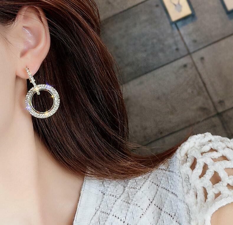 ★送料無料★ ラインストーン ピアス 円 丸 輪 キラキラ ゴールド シルバー ローズゴールド