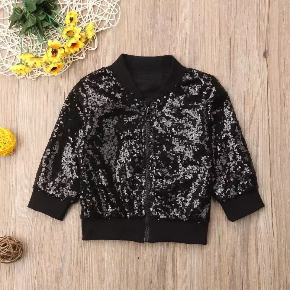 ★送料無料★ スパンコールジャケット 子供 ベビー 赤ちゃん ジャンバー 上着 スタジャン ゴールド 金 ブラック 黒