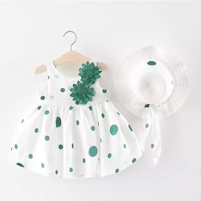 ★送料無料★ ワンピース 帽子 セット 水玉 花 ベビー キッズ 子供 女の子 服 緑 グリーン