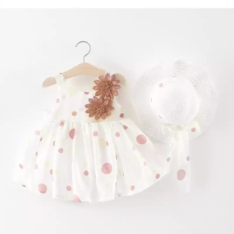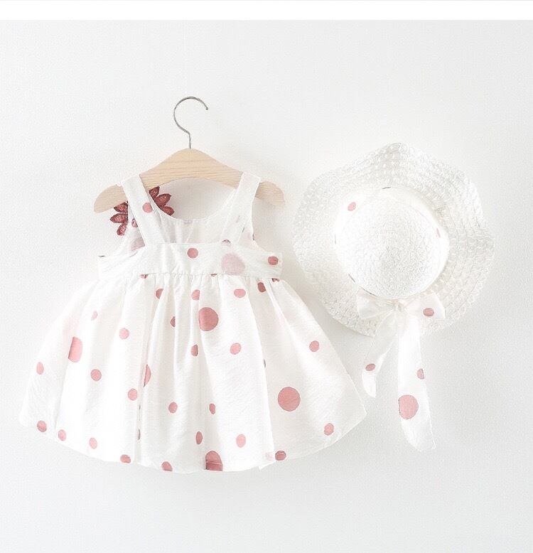 商品:水玉ワンピース+帽子セット