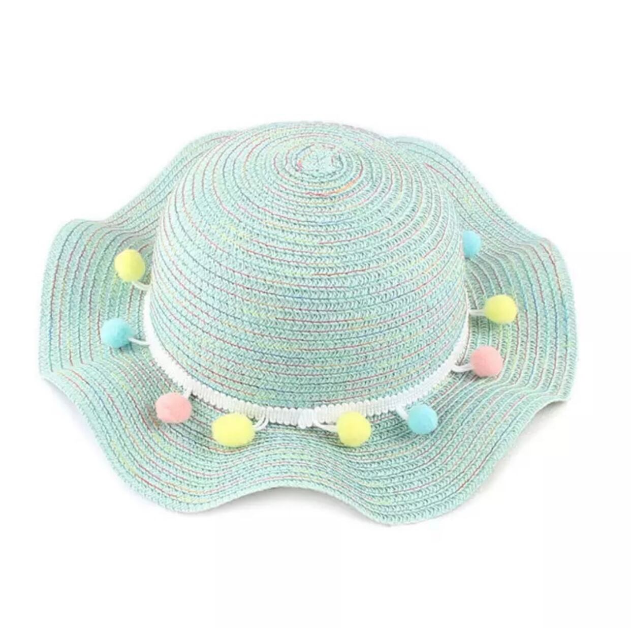 ★送料無料★ 5色 麦わら帽子 むぎわら帽子 キッズ ベビー 子供 キャップ わら UV対策 女の子 ボンボン ペール 優しい色