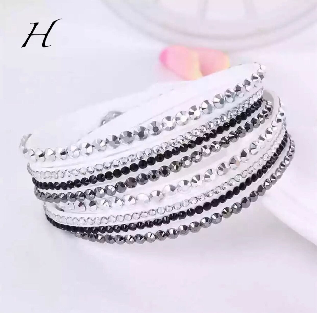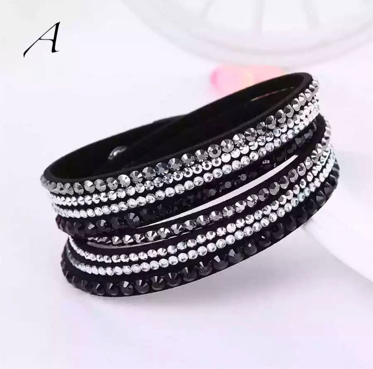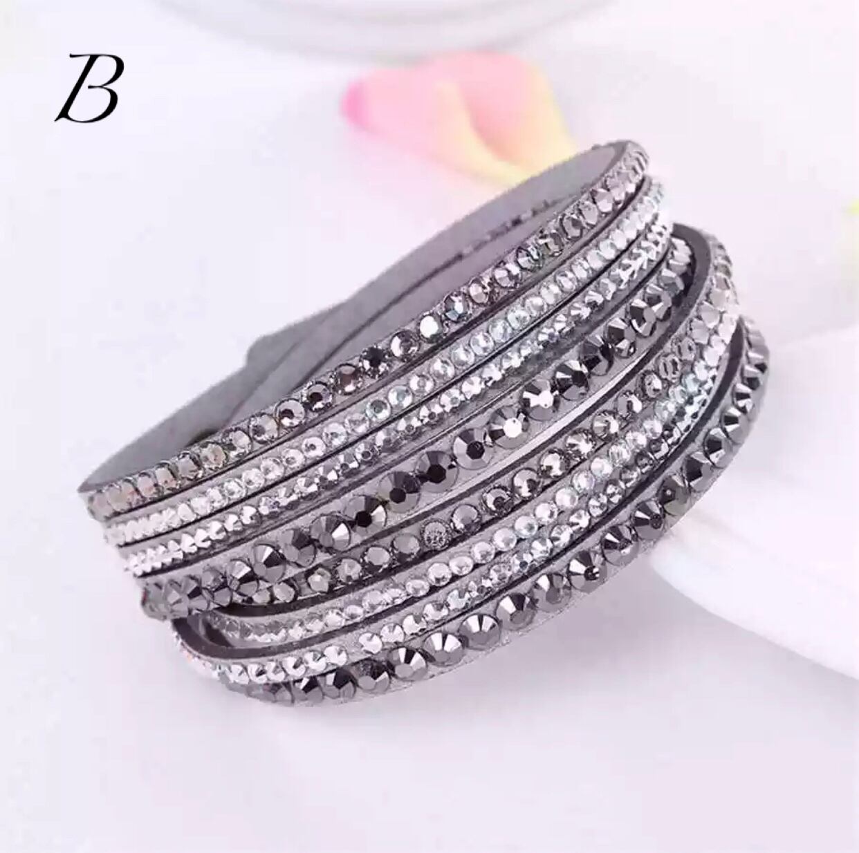 ★送料無料★ 16色!! キラキラブレスレット ラインストーン 2重 男性 女性 レディース 夏 ブレスレット おしゃれ シルバー