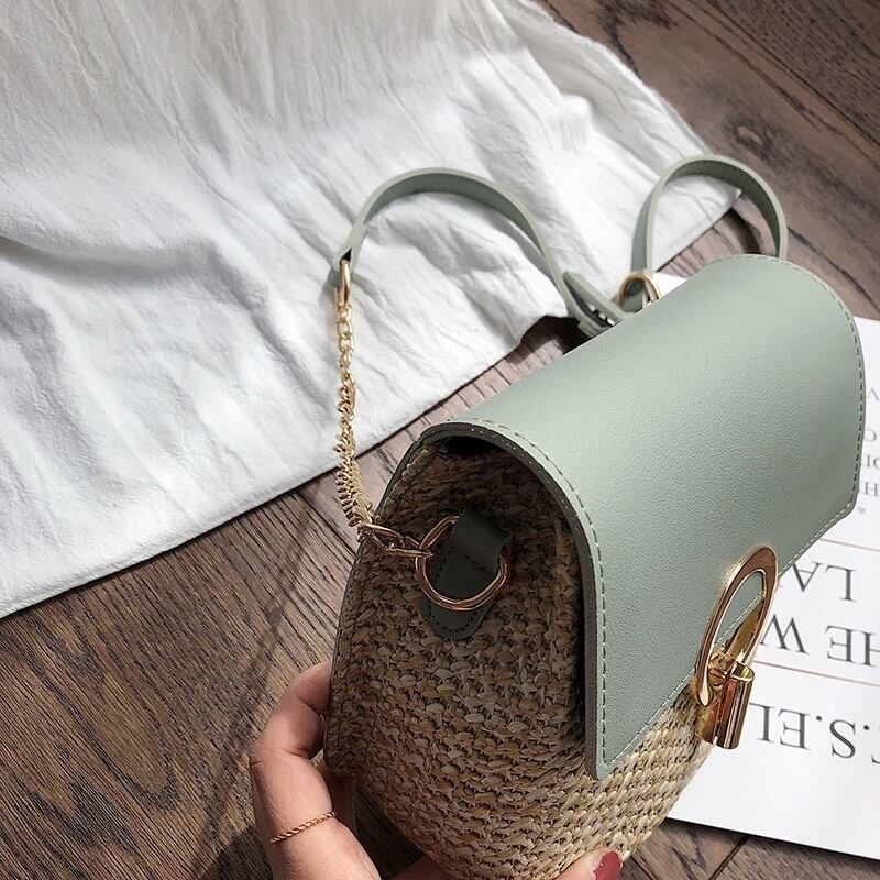 ★送料無料★ 4色 カゴバッグ 籠 かご バッグ レディース 夏 女性用 マリン ビーチ 海 プール わら素材 ショルダーバッグ ブラック ブラウン グリーン ホワイト 黒 茶 緑 白