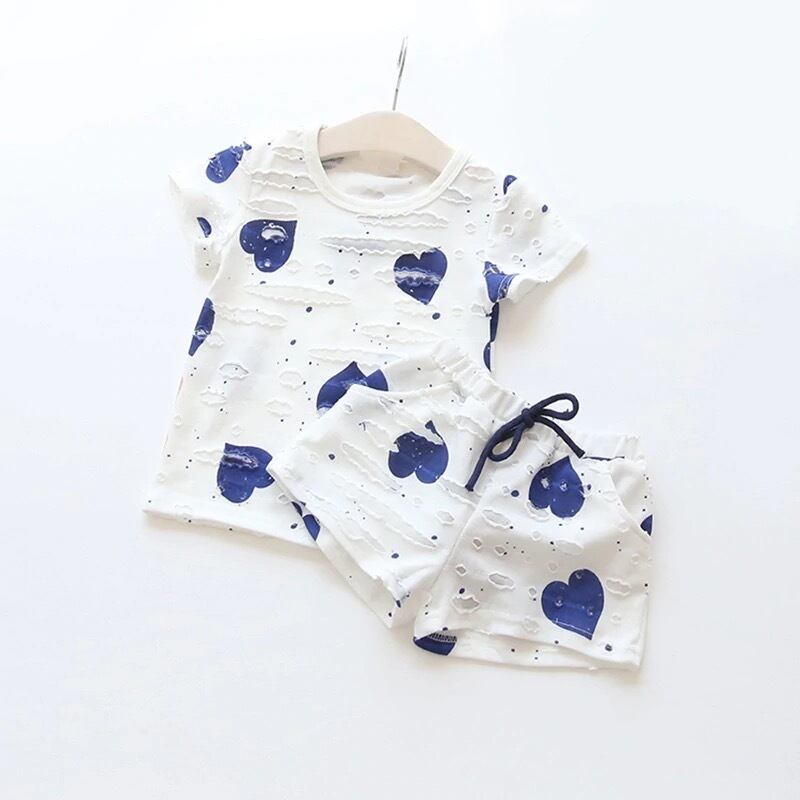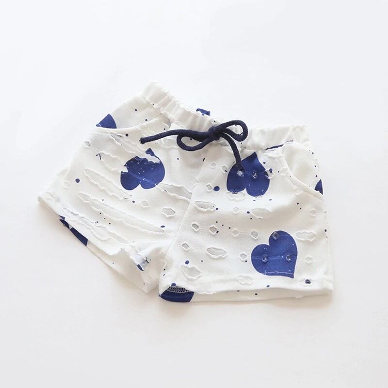 ★送料無料★ 女の子 ハート ブルー 青 Tシャツ ショートパンツ セット 夏 ビーチ 半ズボン ハーフパンツ