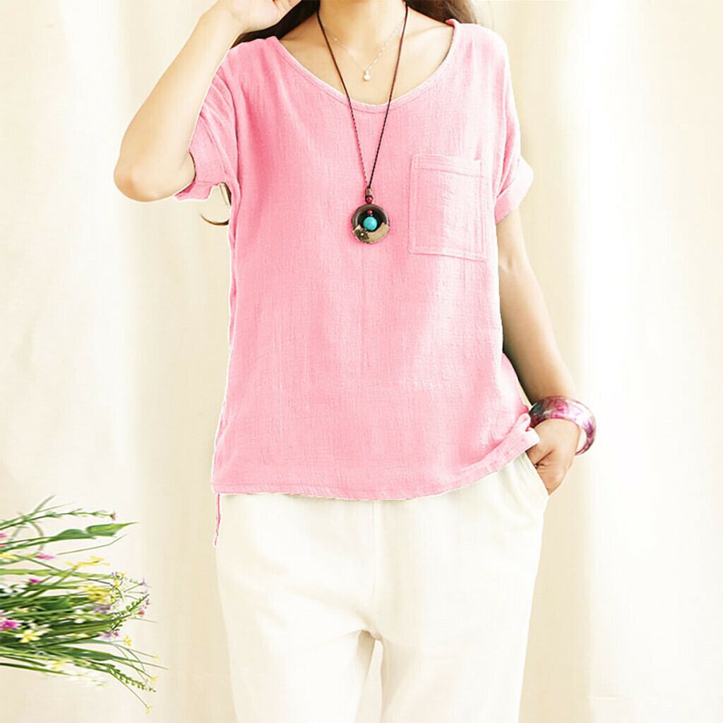 ★送料無料★ 5色 ピンクリネン 麻 ブラウス 半袖 涼しい 服 夏 サマー 海 ビーチ プール