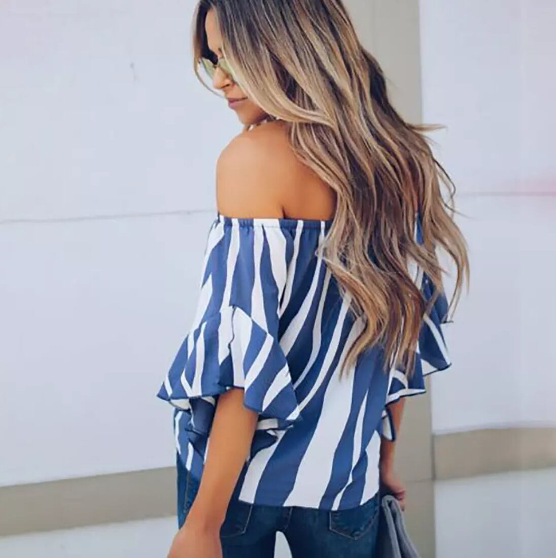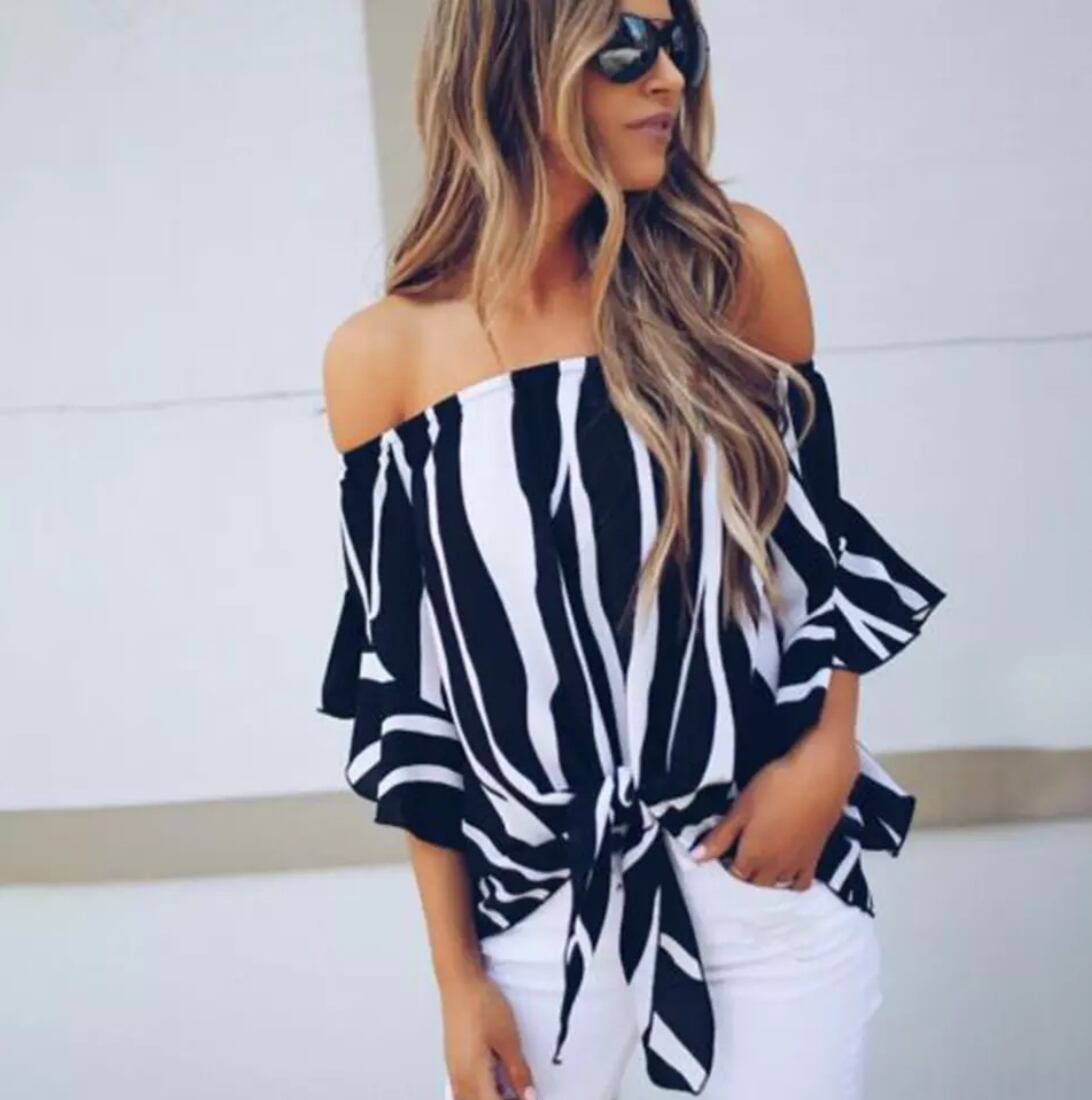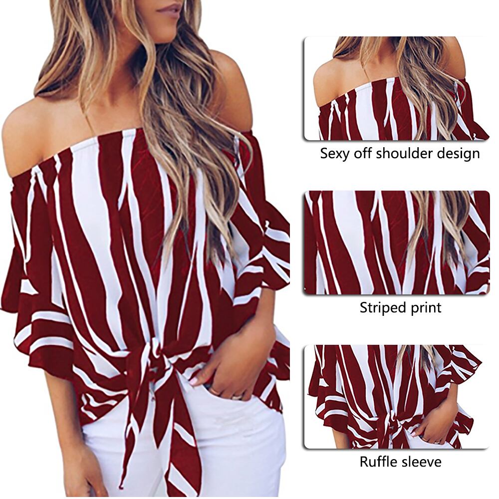 商品:レディースオフショルダーシフォンブラウス