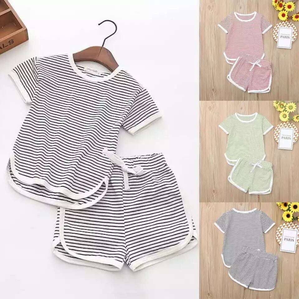 ★送料無料★ 3色 グレー 灰色 キッズ Tシャツ ショートパンツ セット ベビー 子供 女の子 男の子 ボーダー