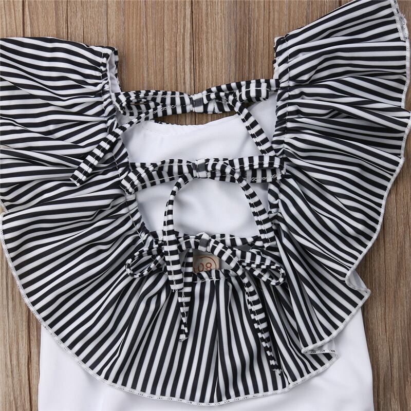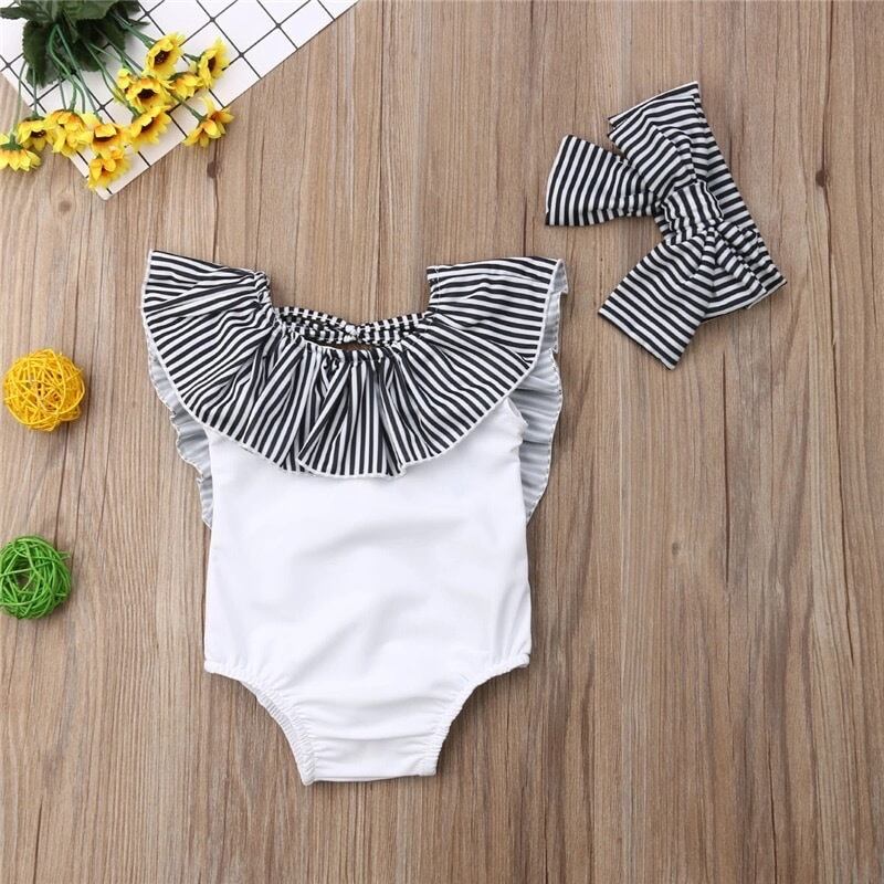 ★送料無料★ 2色 ホワイト 白 水着 ヘアバンド付き スイムウェア ガール 女の子 赤ちゃん ベビー キッズ ボーダー