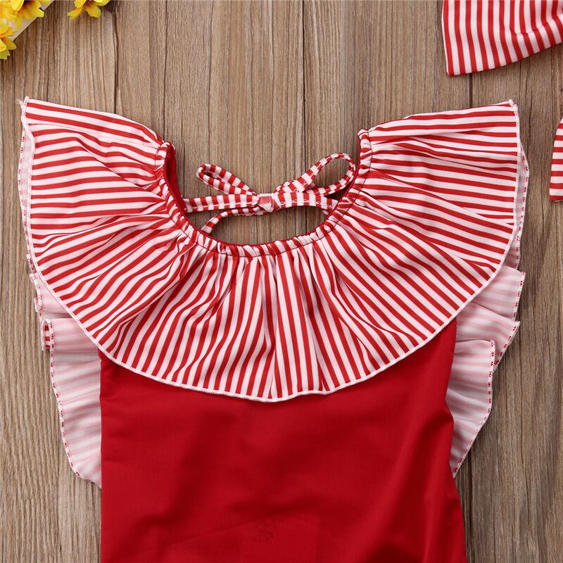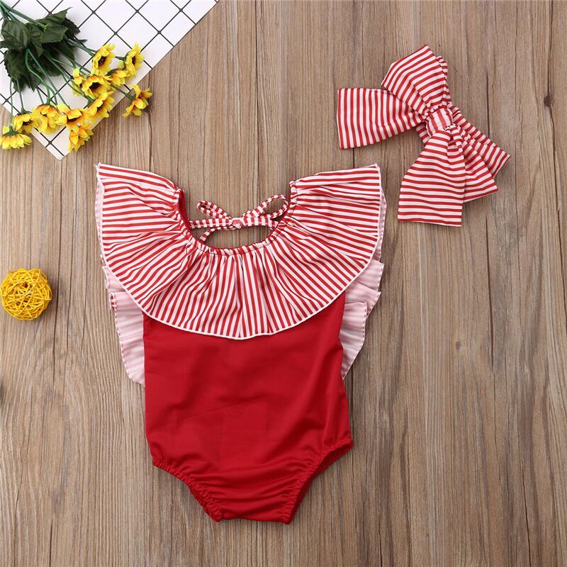 ★送料無料★ 2色 レッド 赤 水着 ヘアバンド付き スイムウェア ガール 女の子 赤ちゃん ベビー キッズ ボーダー
