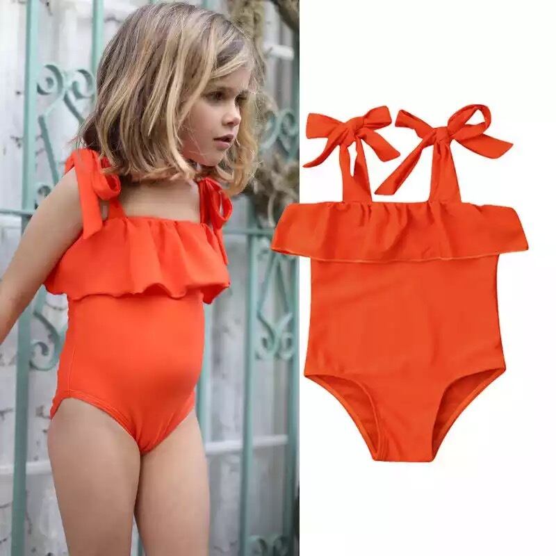★送料無料★ オレンジ リボン 水着 スイムウェア ガール 女の子 赤ちゃん ベビー キッズ 無地