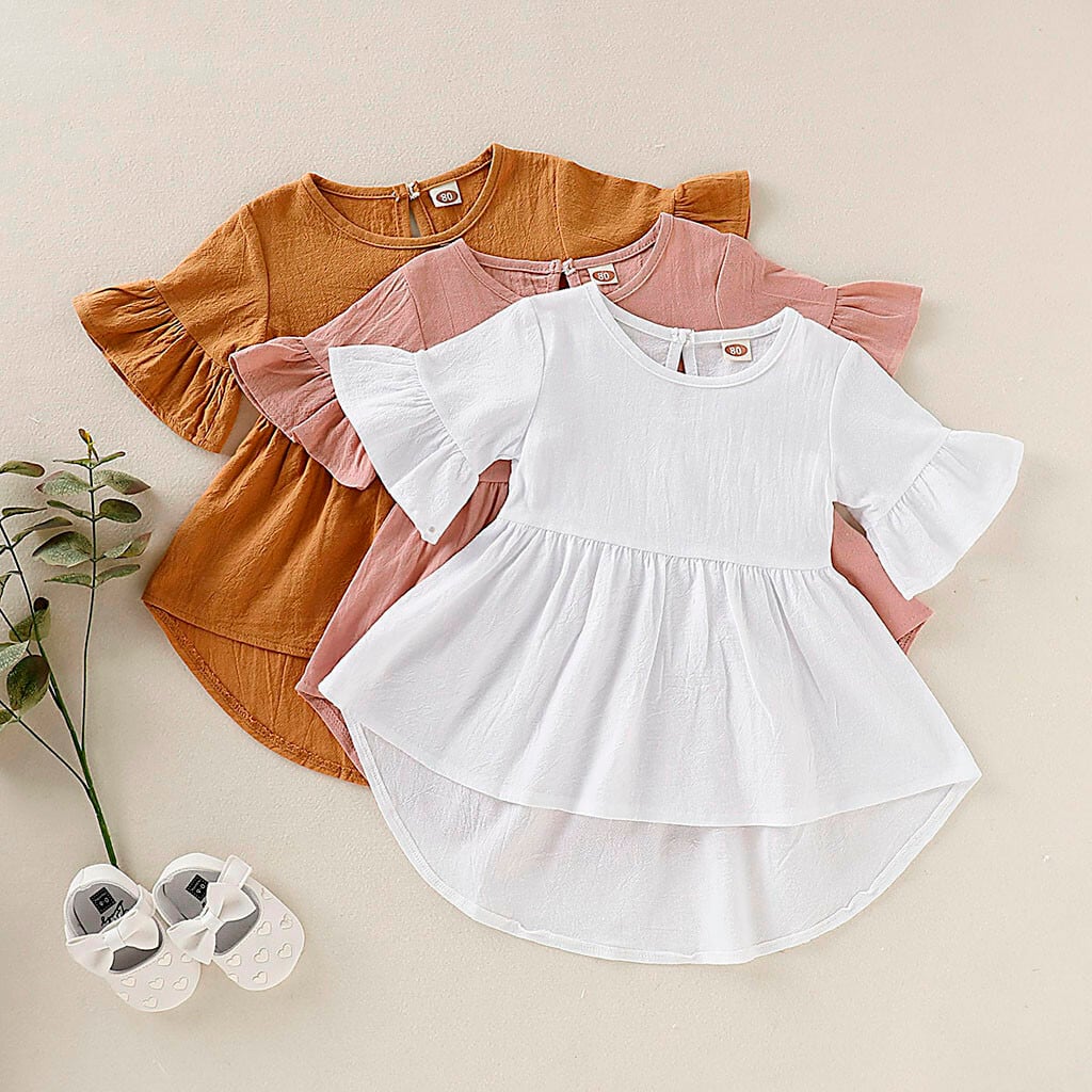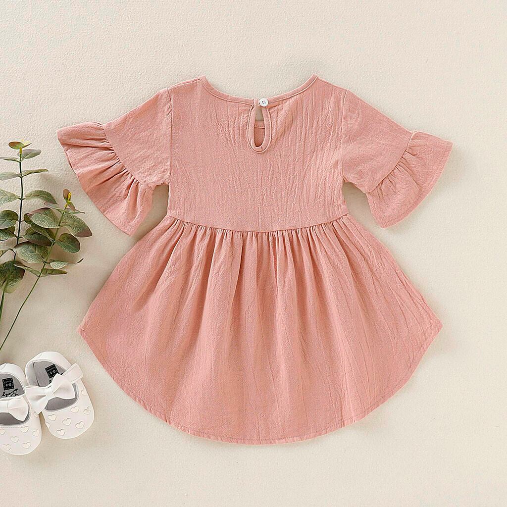 ★送料無料★ 女の子 3色 ピンク ワンピース ヒラヒラ フレア キッズ ベビー 赤ちゃん 子供 服 ドレス ナチュラル