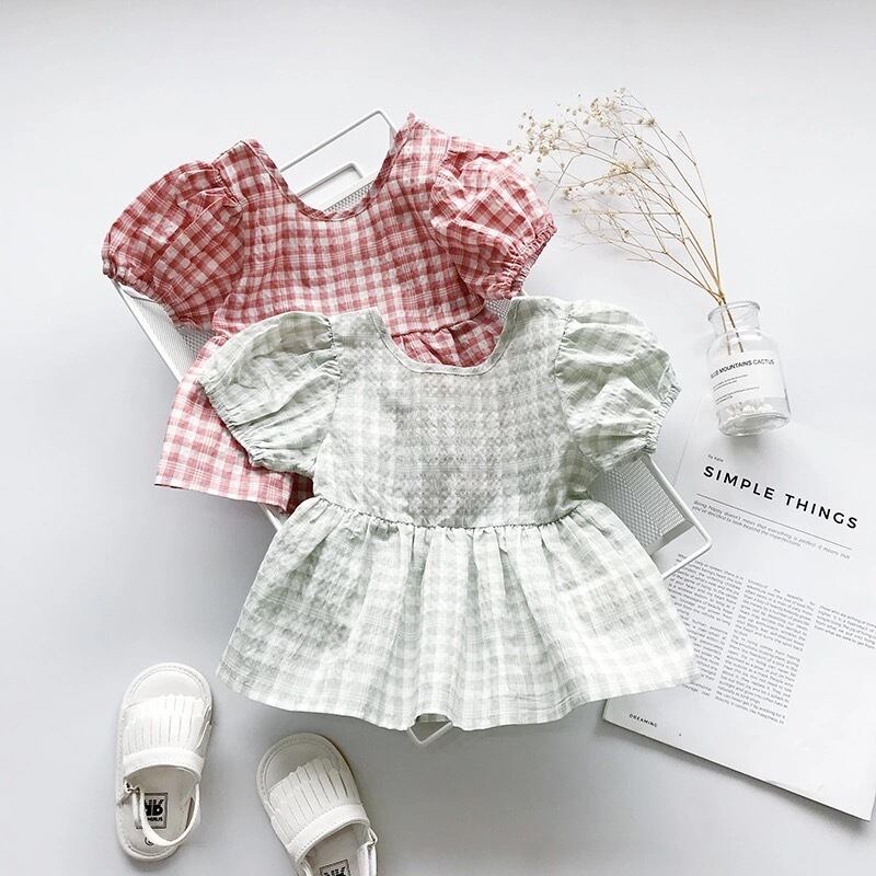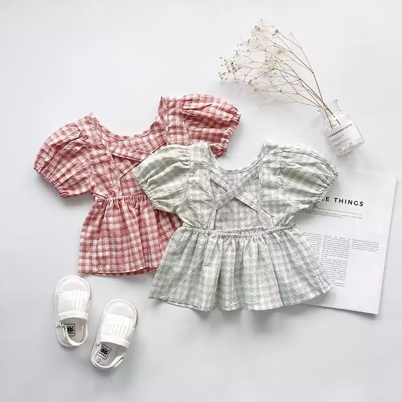 ★送料無料★ 女の子 2色 ペール グリーン チェック ブラウス 子供 ベビー キッズ 服 かわいい 優しい