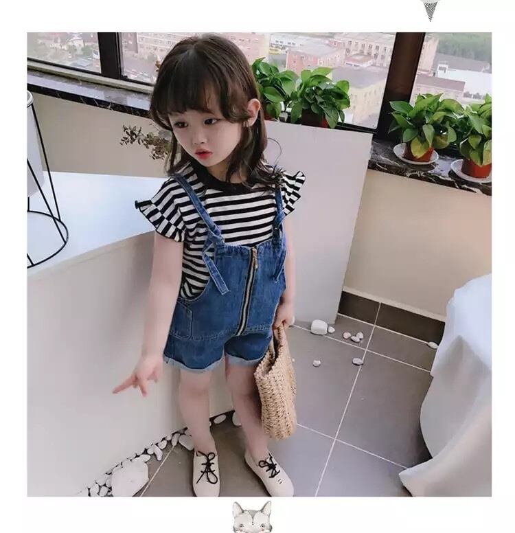 ★送料無料★ 女の子 ボーダー カットソー オールインワン セット オーバーオール サロペット Tシャツ キッズ ベビー 子供