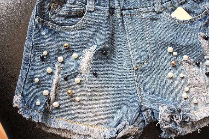 ★送料無料★ 女の子 ビジュー ショートパンツ ホットパンツ デニム 宝石 パール風 子供 キッズ ベビー マリン ビーチ 海 プール