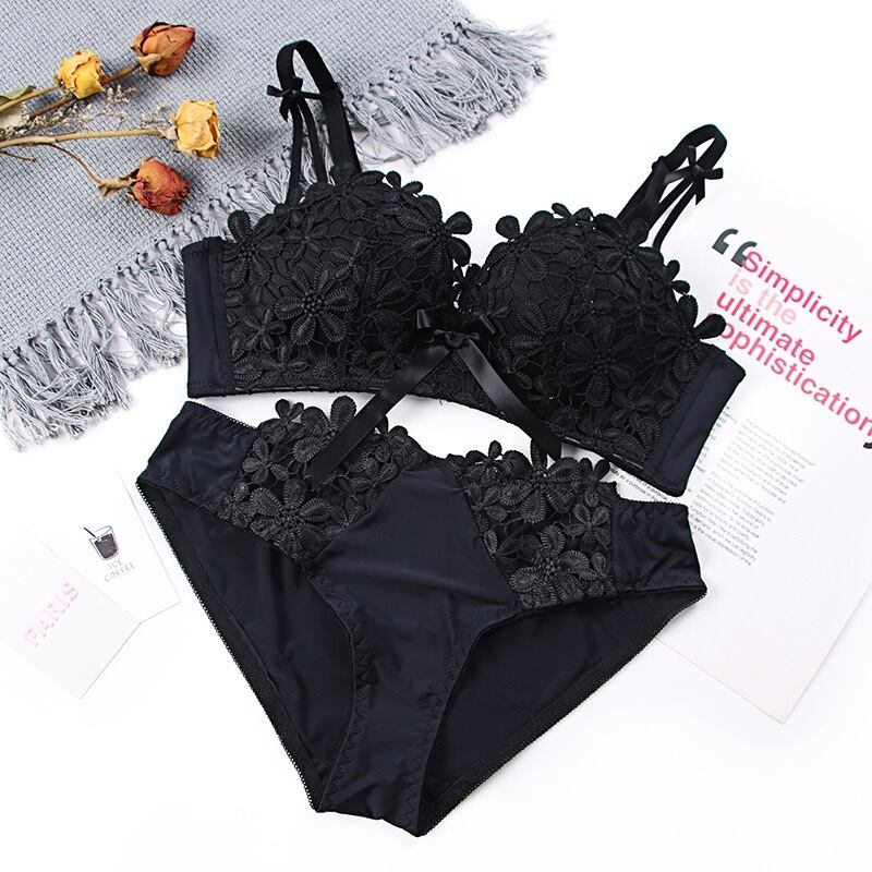 ★送料無料★ レディース 3色 レッド 赤 花 フラワー ランジェリー パンツ ブラジャー セット ショーツ 女性用 レース