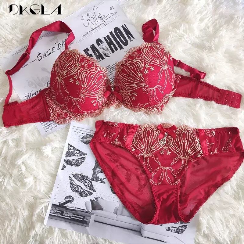 ★送料無料★ レディース 2色 レッド 赤 模様 柄 ランジェリー パンツ ブラジャー セット ショーツ 女性用 レース 刺繍