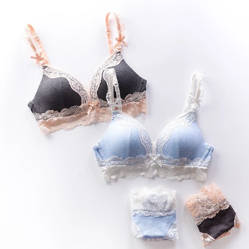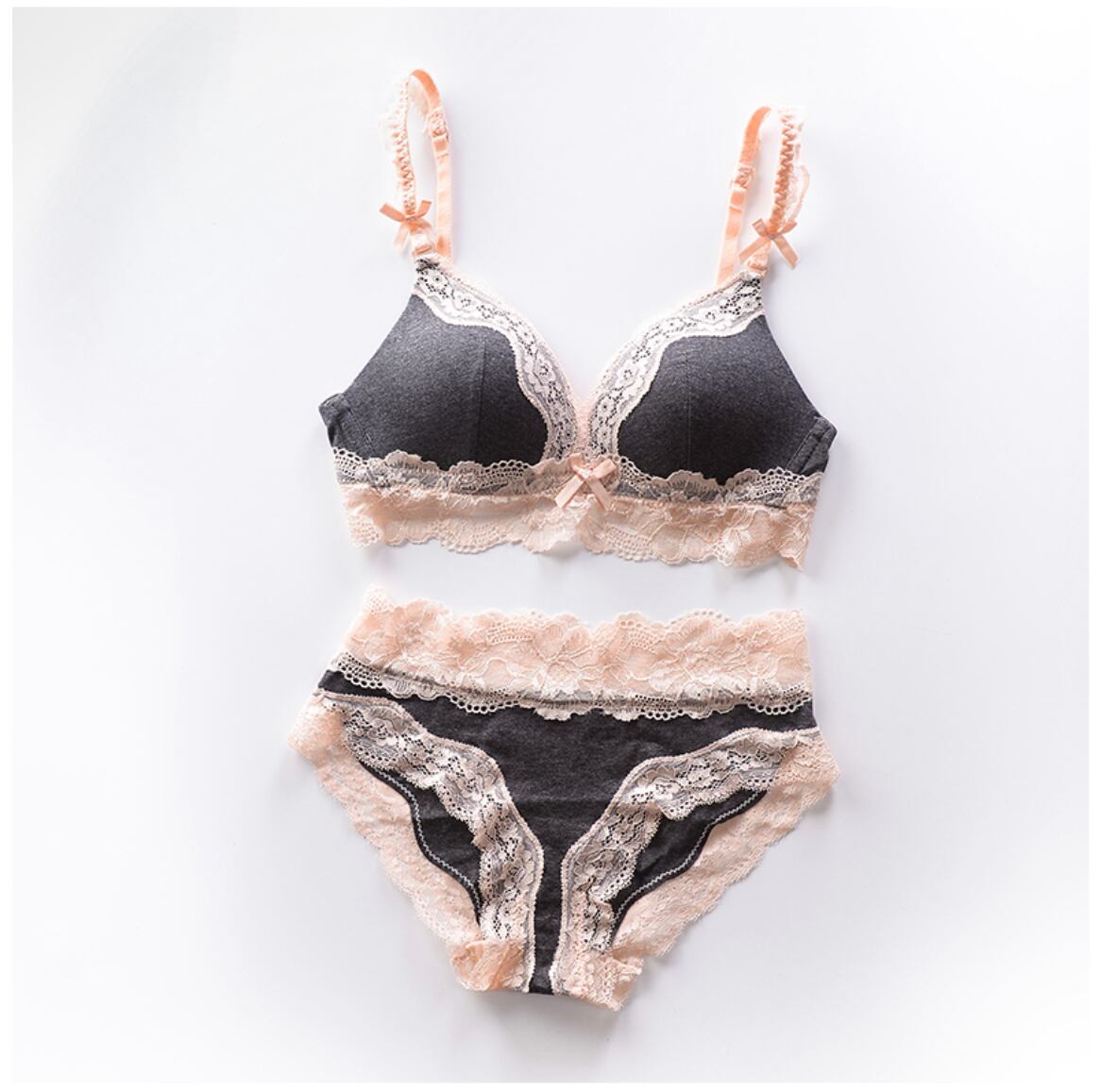 ★送料無料★ レディース 4色 グレー 灰色 ランジェリー パンツ ブラジャー セット ショーツ 女性用 レース