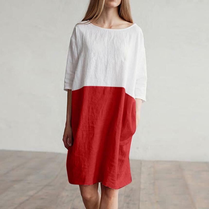 ★送料無料★ 3色 レッド 赤 バイカラー コットン ワンピース ノースリーブ レディース 女性 膝丈 夏 夏服 ビーチ 海 プール