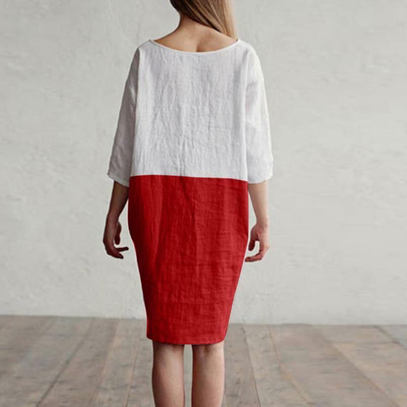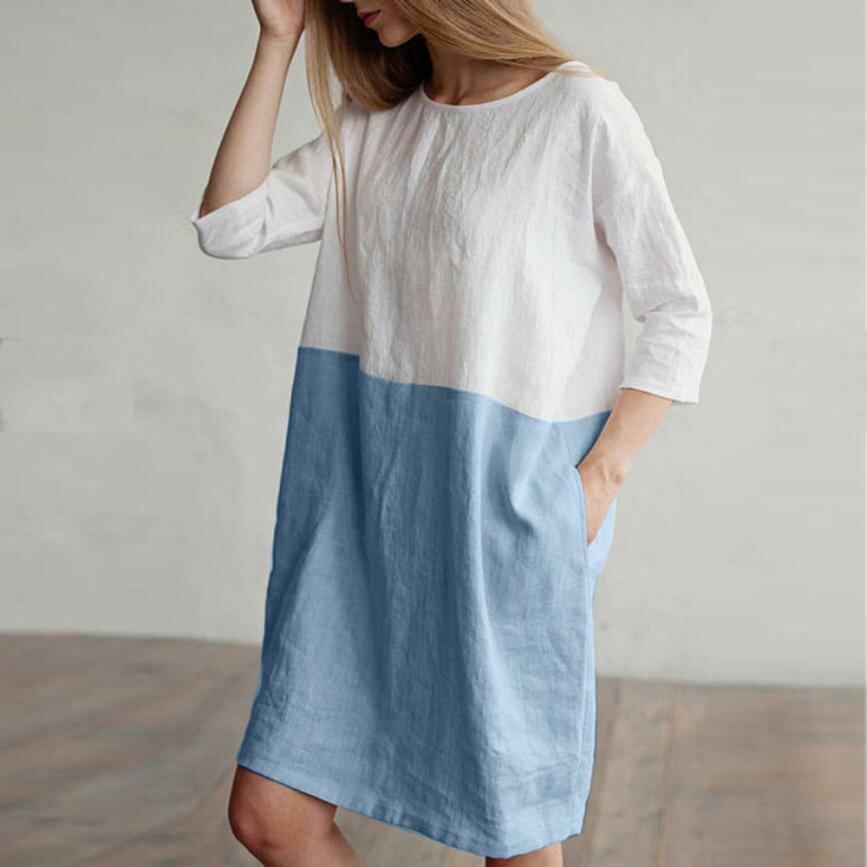 ★送料無料★ 3色 スカイブルー 水色 青 バイカラー コットン ワンピース ノースリーブ レディース 女性 膝丈 夏 夏服 ビーチ 海 プール