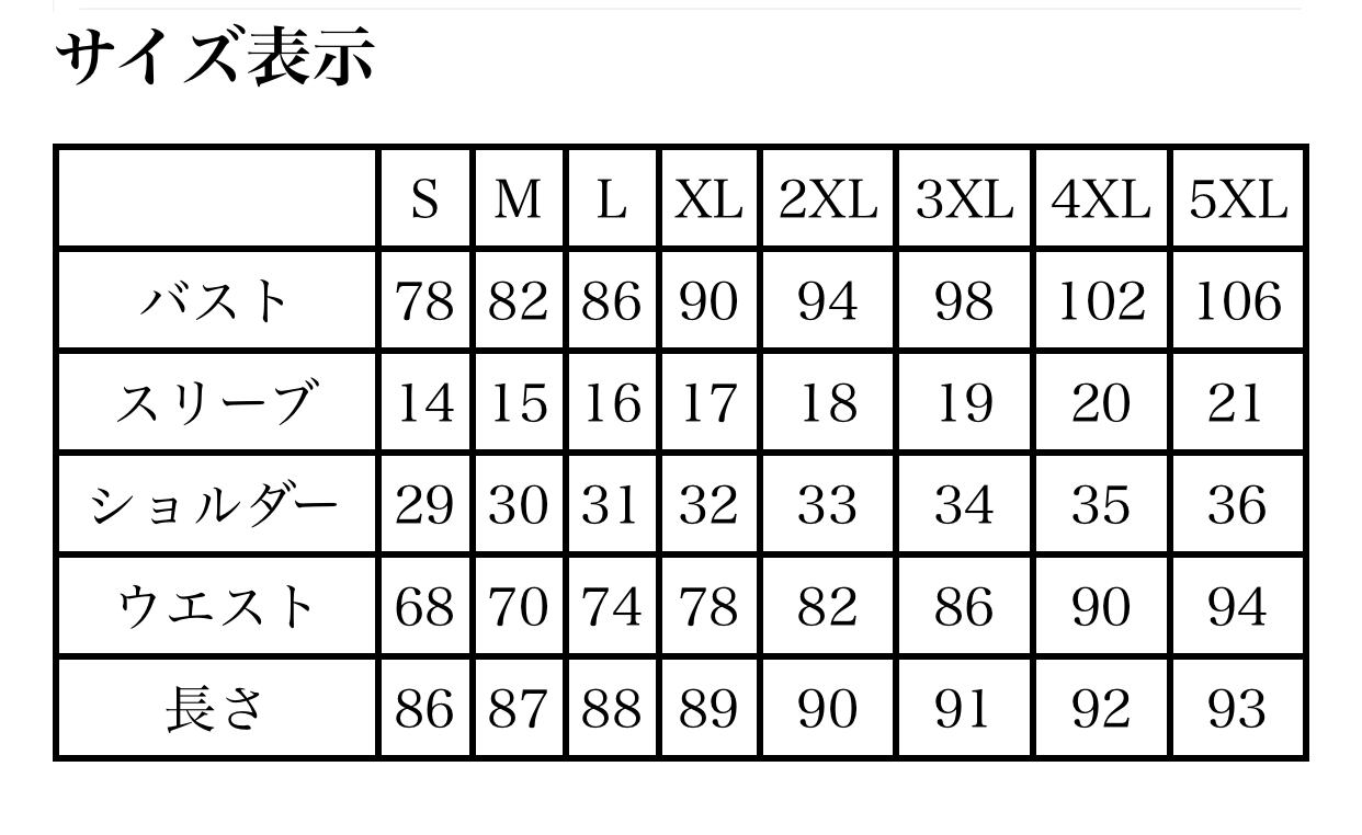 サイズ:S、M、L、XL、2XL、3XL、4XL、5XL
