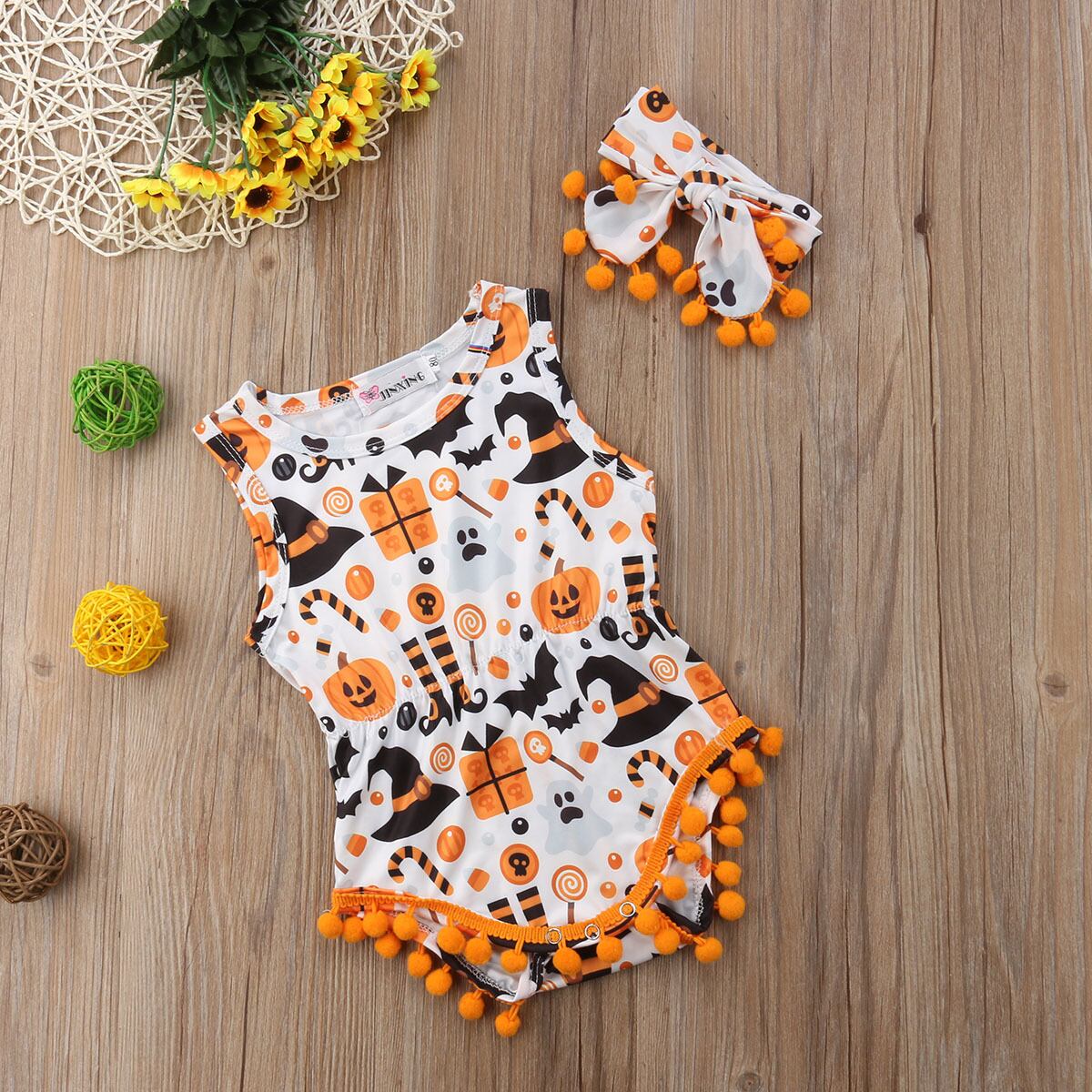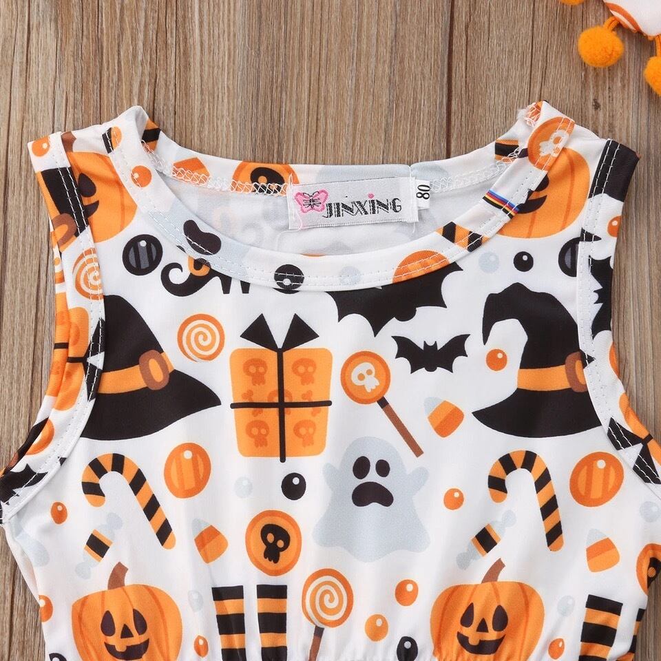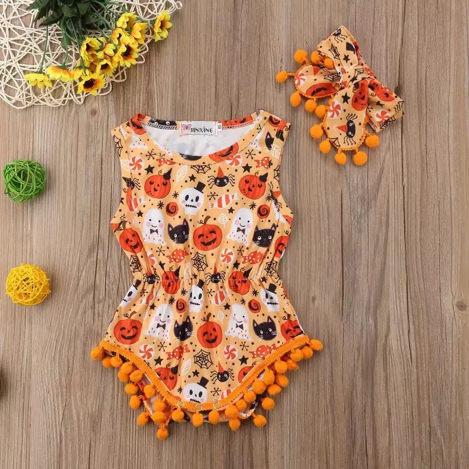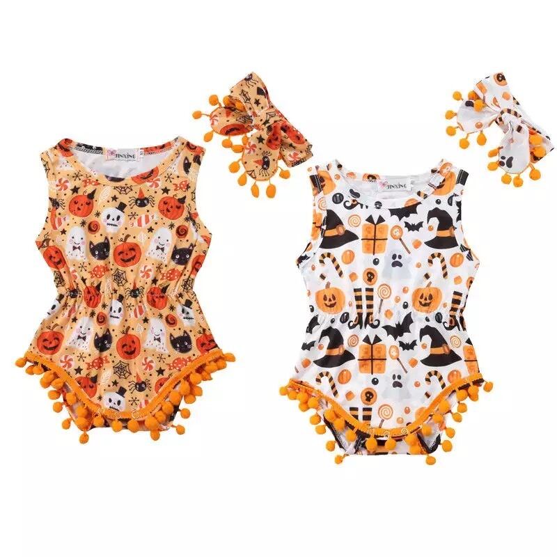 ★送料無料★ 2柄 ハロウィン 模様 柄 かぼちゃ ロンパース ジャンプスーツ オールインワン 女の子 男の子 キッズ 子供 ベビー 赤ちゃん ヘアバンド