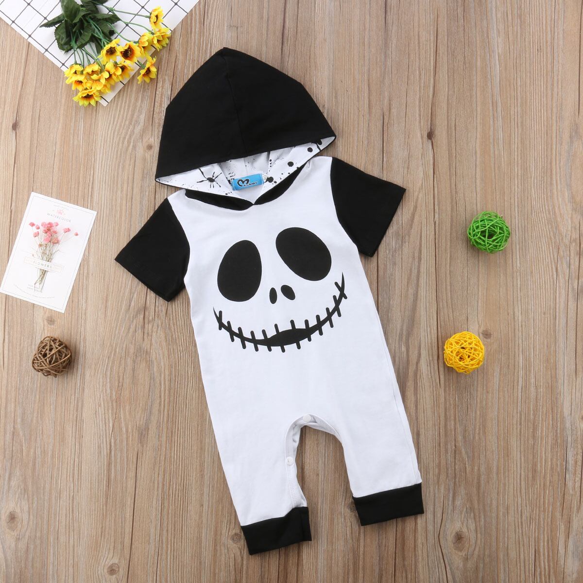 ★送料無料★ ハロウィン ゴースト ロンパース ジャンプスーツ オールインワン 女の子 男の子 キッズ 子供 ベビー 赤ちゃん モノトーン フード付