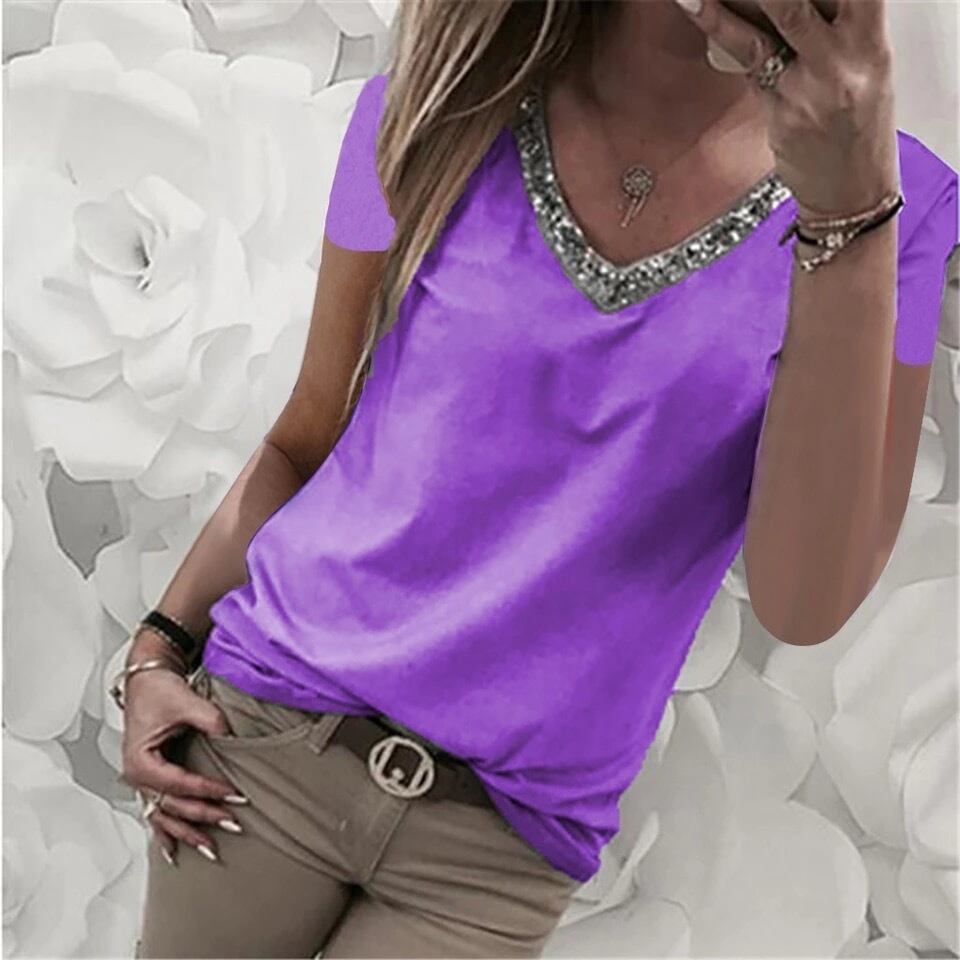 ★送料無料★ 5色 グレー 灰色 スパンコール ブラウス Tシャツ カットソー 半袖 涼しい 服 夏 サマー 海 ビーチ プール