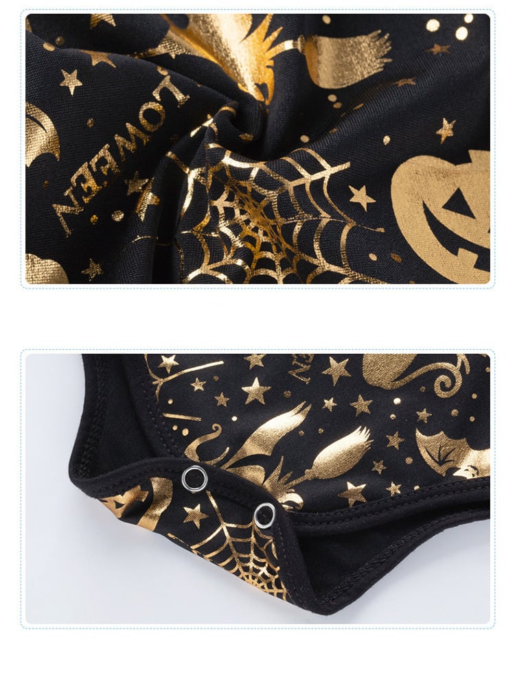 ★送料無料★ 黒 金 ブラック ゴールド ハロウィン 模様 柄 かぼちゃ ロンパース ジャンプスーツ オールインワン 女の子 男の子 キッズ 子供 ベビー 赤ちゃん