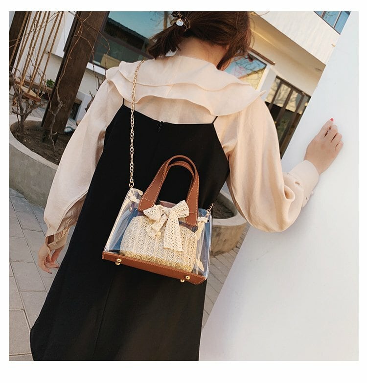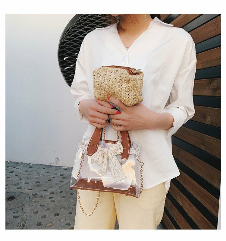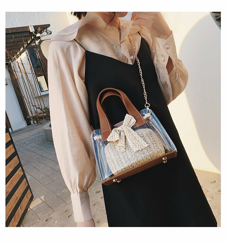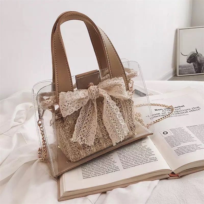 ★送料無料★ 3種 クリアバッグ クリアショルダーバッグ 透明バッグ クリア 夏 ビーチ リゾート ショルダーストラップ PVC バッグ ミニバッグ ハンドバッグ レース リボン