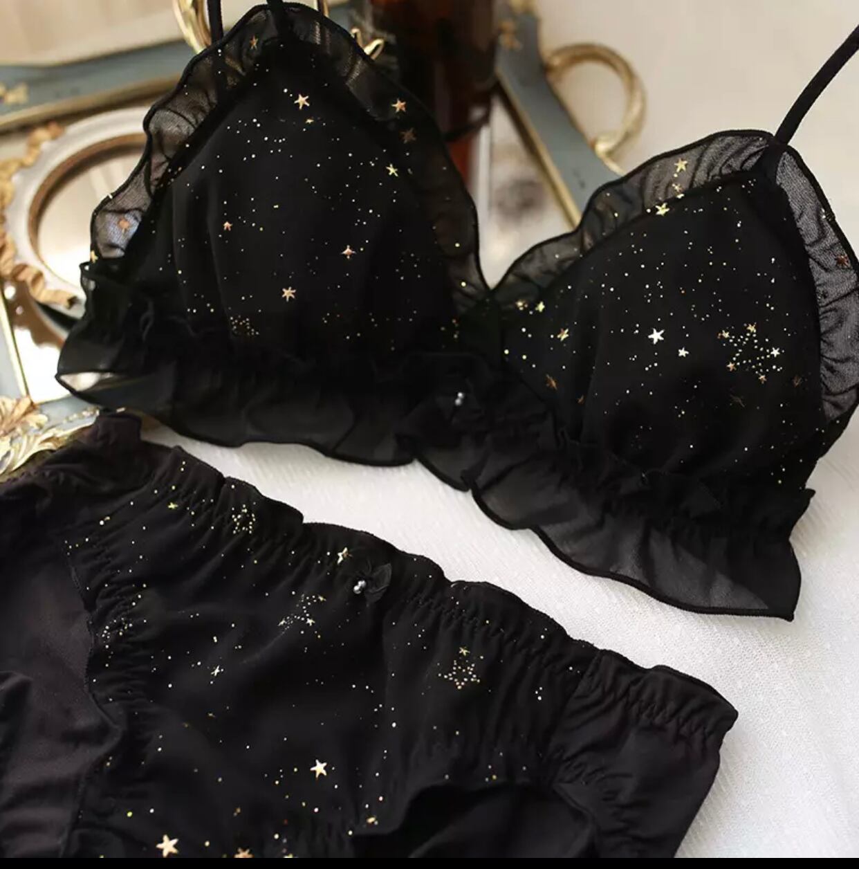 ★送料無料★ 3色 レディース ホワイト 白 ひらひら ふわふわ スター 星 キラキラ ランジェリー パンツ ブラジャー セット ショーツ 女性用