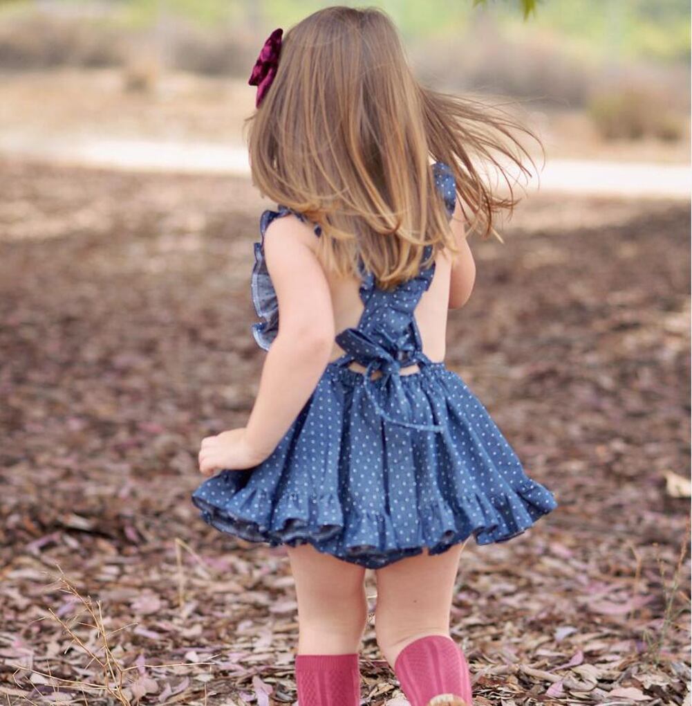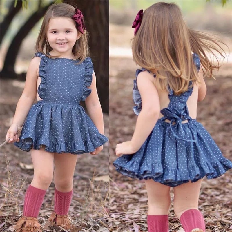 ★送料無料★ 女の子 ワンピース 水玉 ドット フリル 紺色 キッズ ベビー 赤ちゃん コットン かわいい おしゃれ 1歳 2歳 3歳 4歳 5歳 6歳