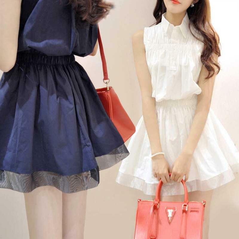 ★送料無料★ 2色 ホワイト 白 レディース ワンピース ノースリーブ ミニスカート 女性 フリル 襟付き 大きいサイズ S M L XL 2XL